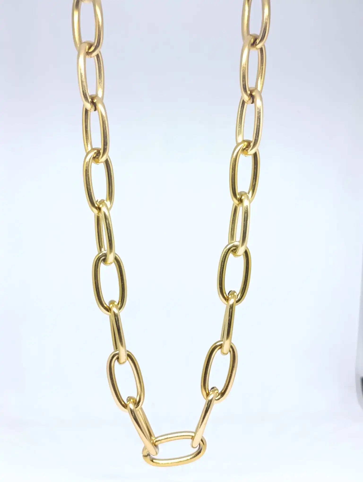 Collar de acero inoxidable de acabado dorado de eslabones ovalados y alargados.