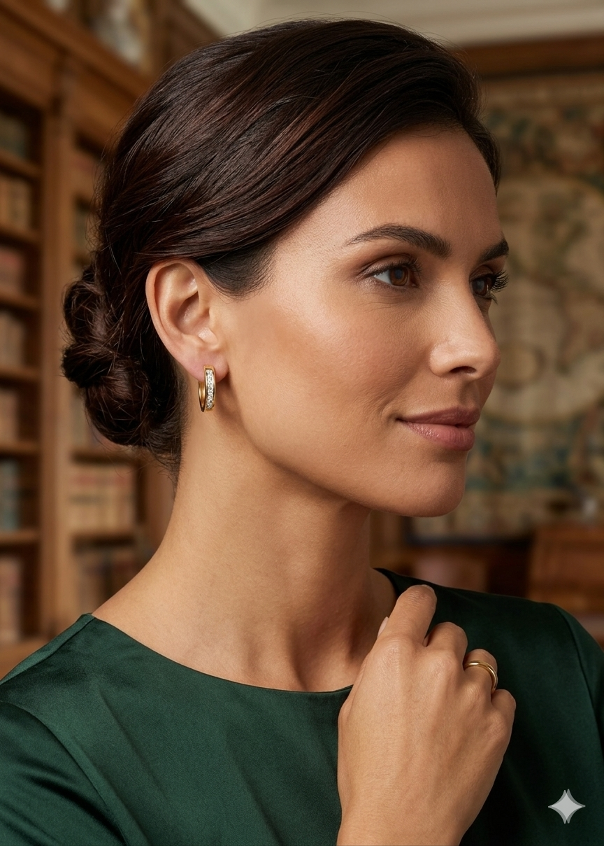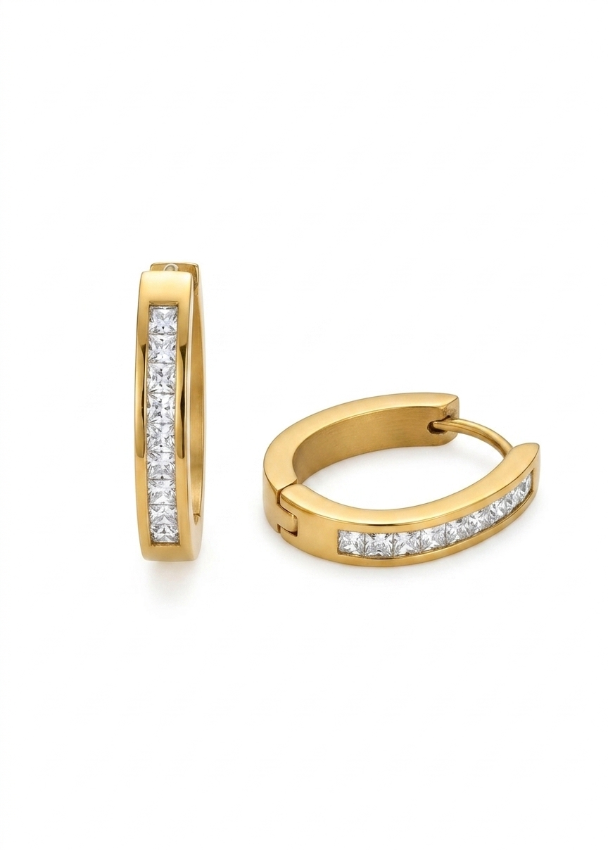 Estos pendientes presentan un diseño contemporáneo y lujoso, ideales para quienes buscan una pieza atemporal con un toque de brillo geométrico.
