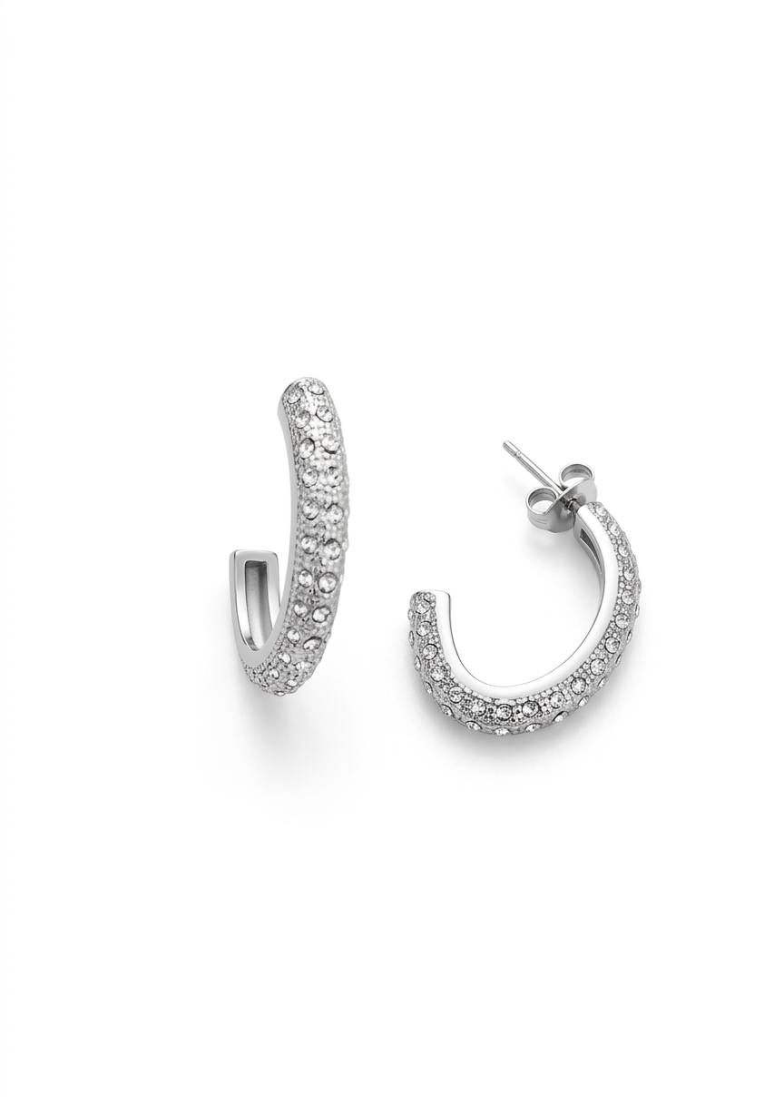 Dale un toque de glamour a tu look con estos aros abiertos cubiertos de deslumbrantes cristales.