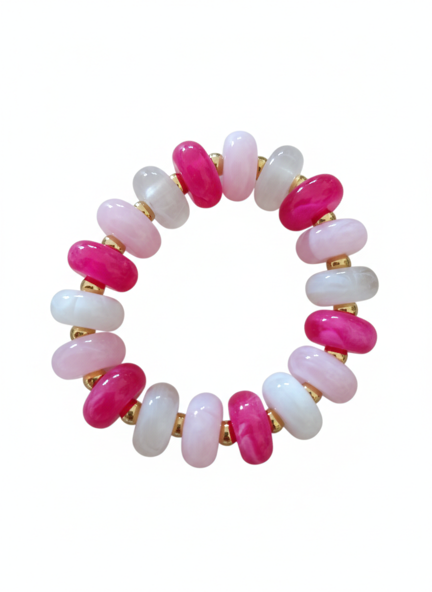 Composición: Se trata de una pulsera multihilo (o de varias vueltas) compuesta por cuentas de resina de alta calidad con acabado pulido y brillante.