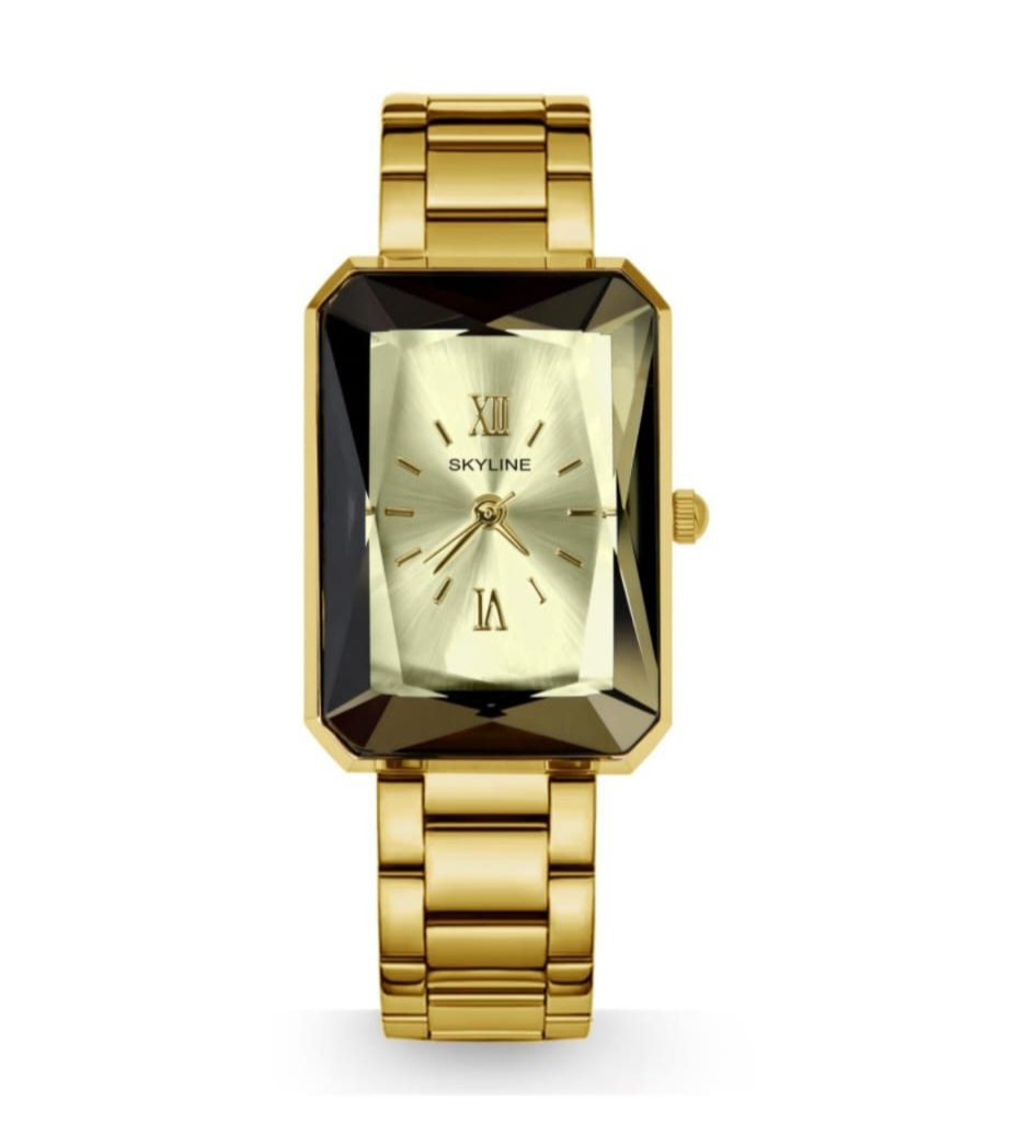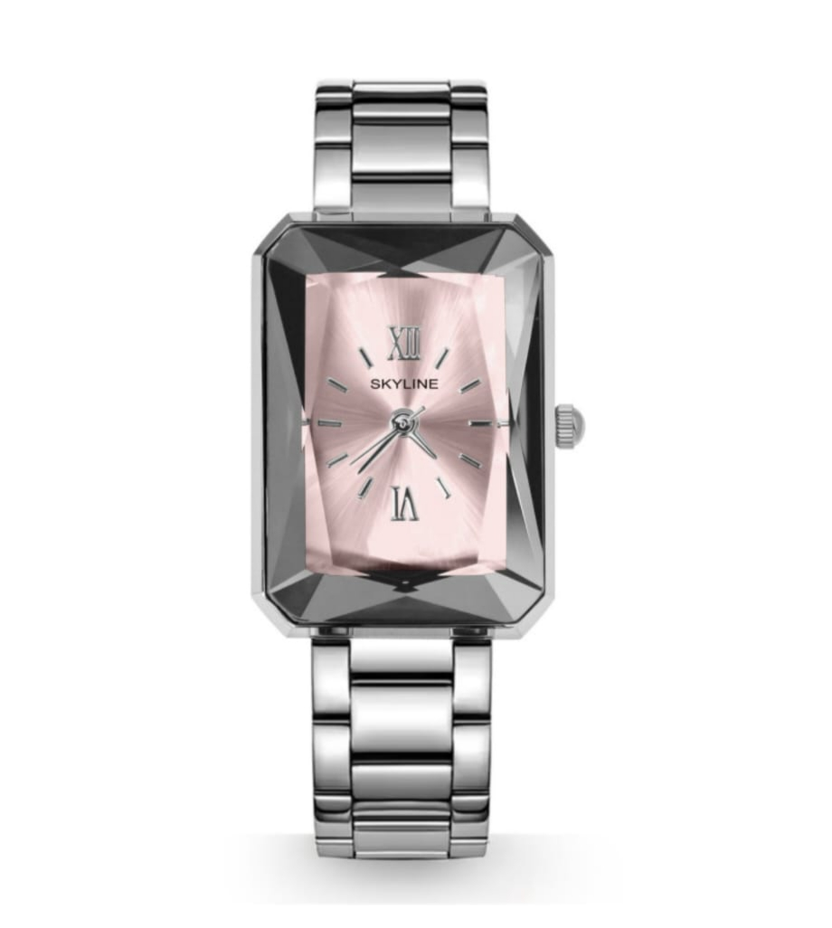 Reloj Skyline Cristal Gold & Silver Inspirado en la talla de las piedras preciosas, el Cristal redefine la elegancia. Su cristal facetado protege una delicada esfera rosa, montada sobre una estructura de acero pulido de alta calidad. No es solo un reloj, es el reflejo de tu brillo propio.