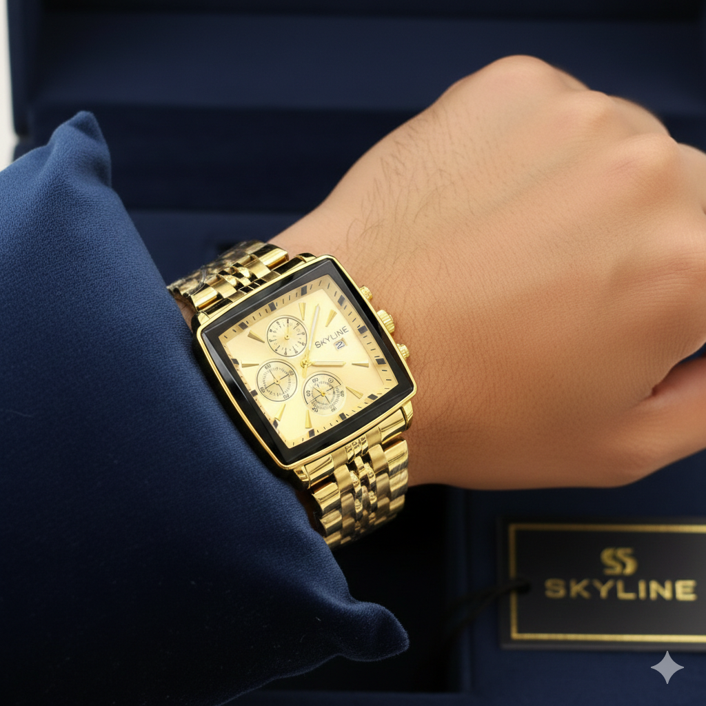 Cronógrafo Skyline: Elegancia Geométrica en Oro